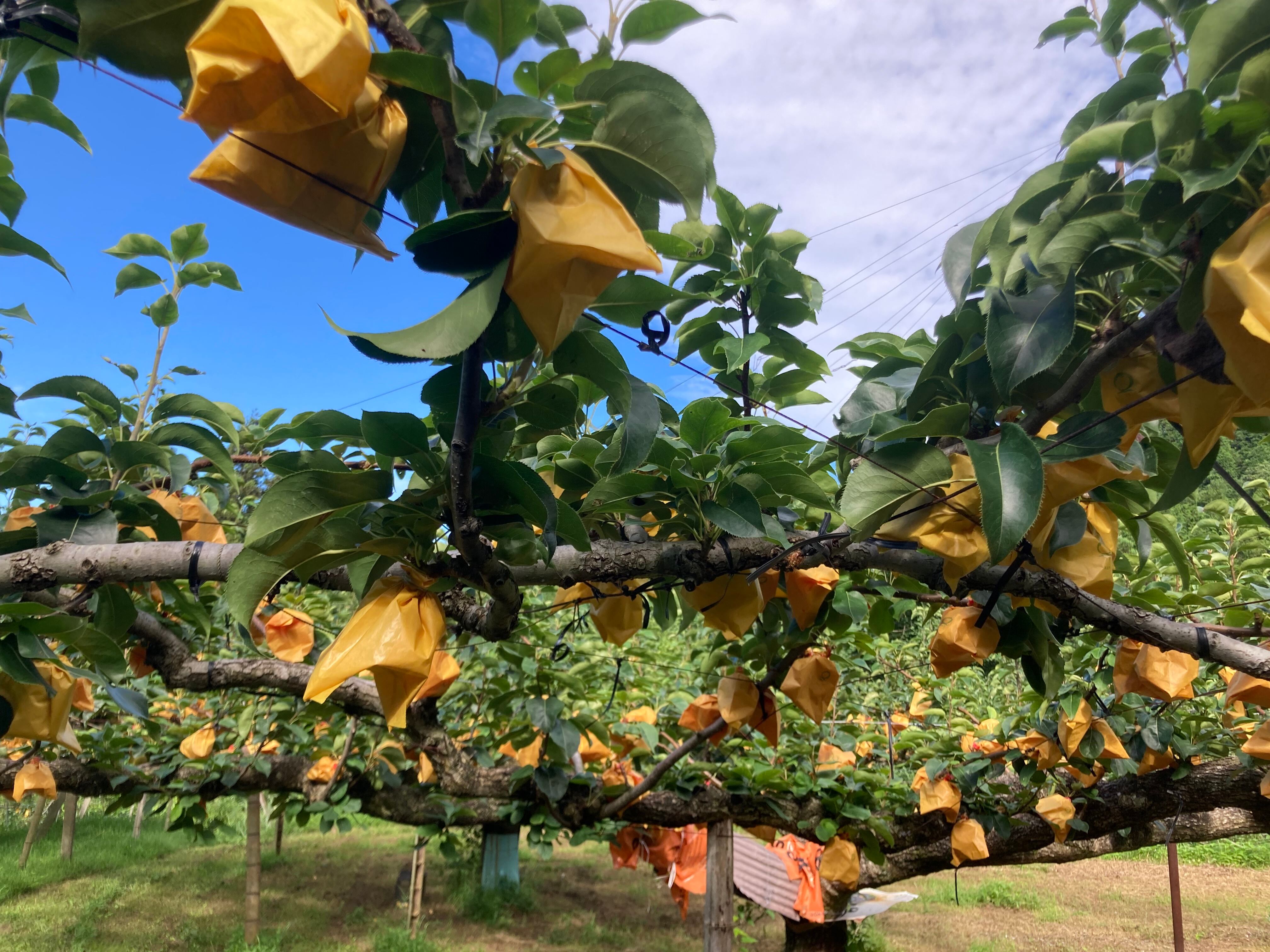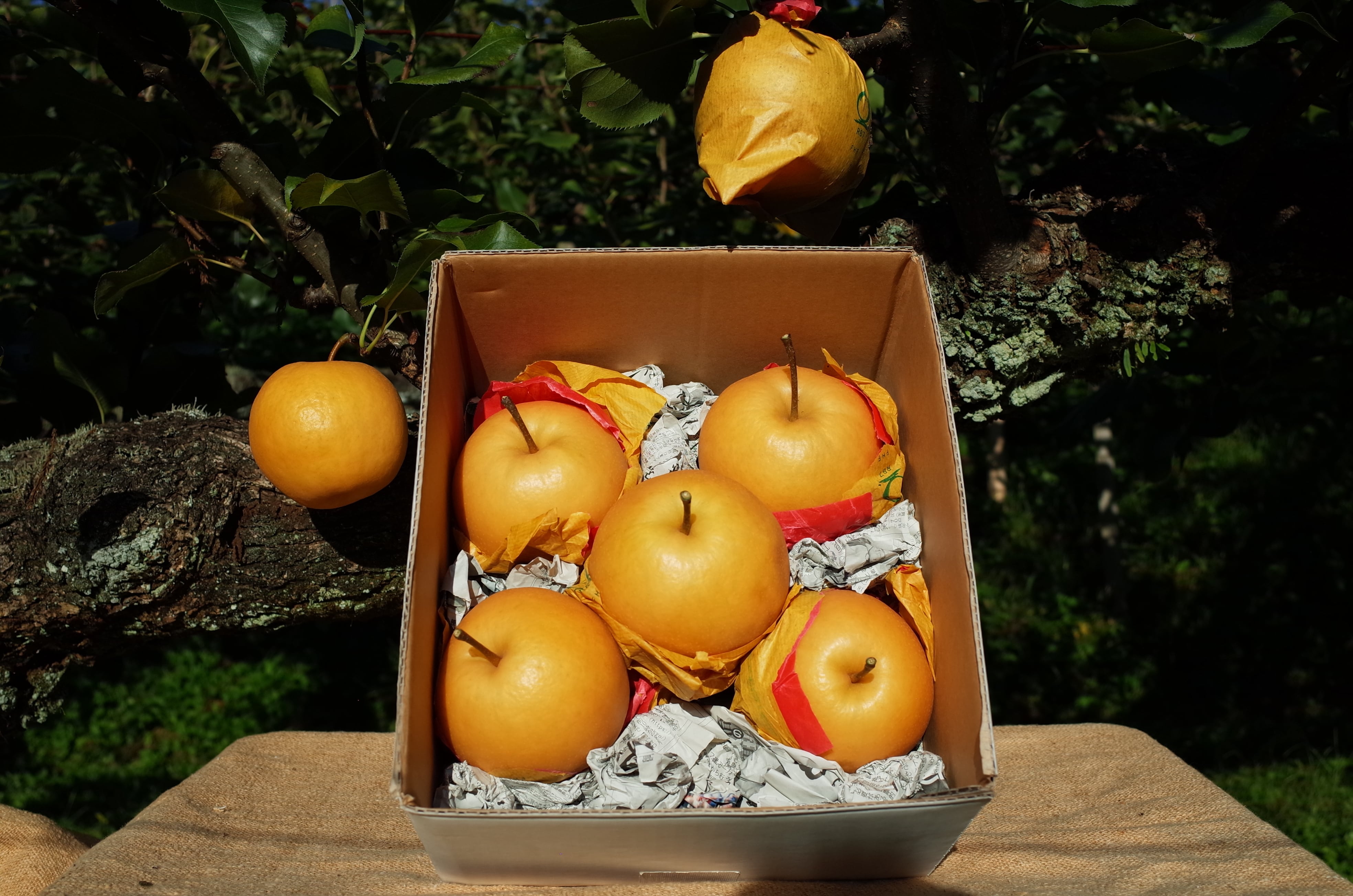 「菊水」と「君塚早生」を交雑して昭和40年に誕生した品種です。新水は梨の中でも約250gと小ぶりの梨ですが、甘みもあり果肉は柔らかい濃厚な味わいです。他の品種に比べて日持ちしにくいためお早めにお召し上がりください。